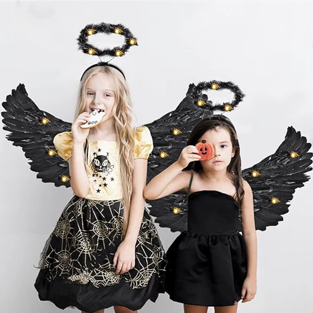 Ailes d’Ange Noires à LED avec Auréole Lumineuse